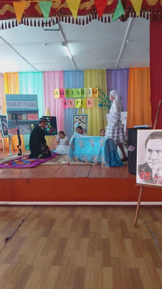 «Аққулар ұйықтағанда» поэмасы бойынша сахналық қойылым болды. Қойылымда оқушылар өз образдарын сомдап, кейіпкер бейнесін ашты.