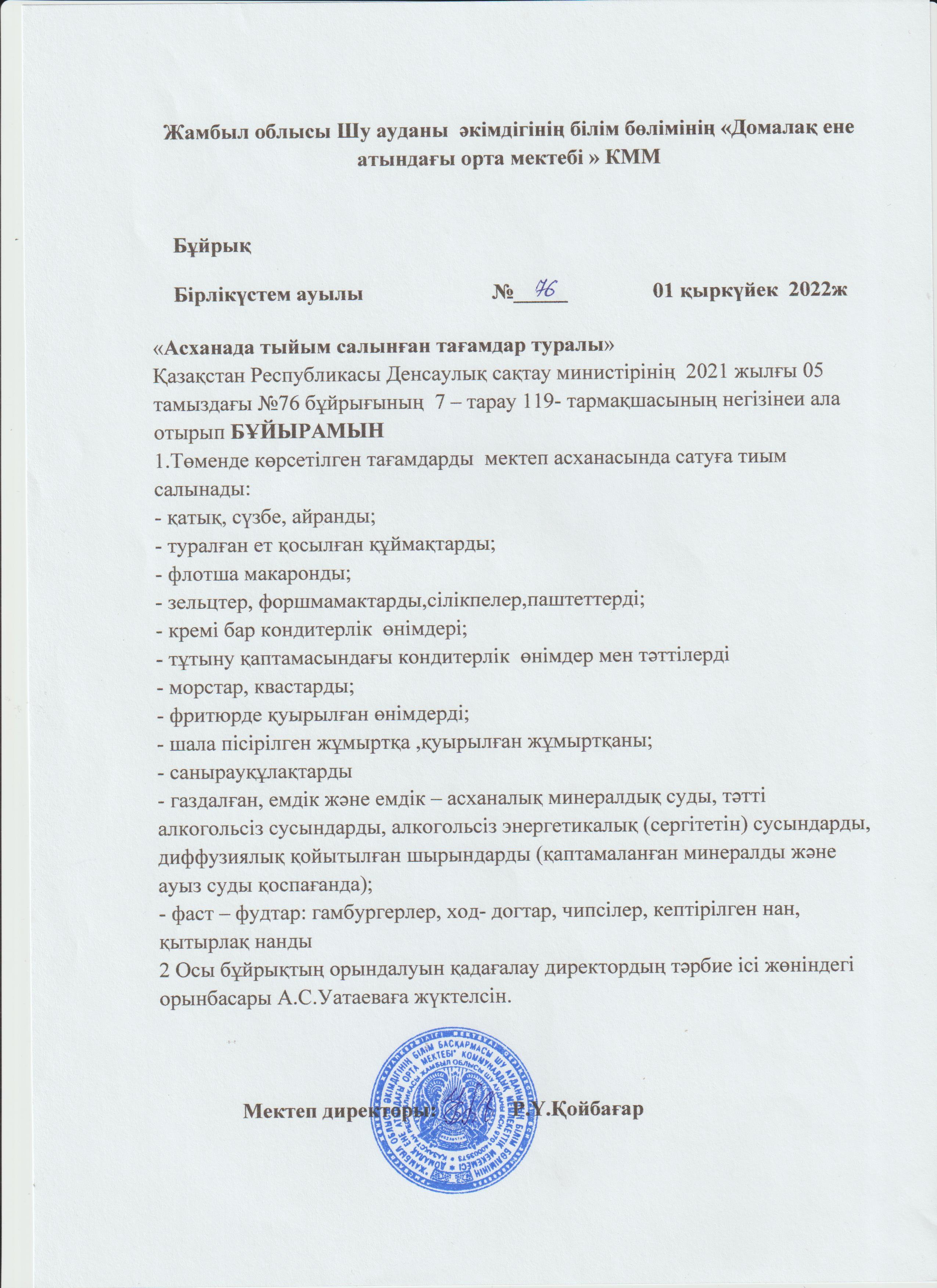 Асханадағы тыйым салынған тағамдар туралы » Домалак-Ене атындағы орта мектеп