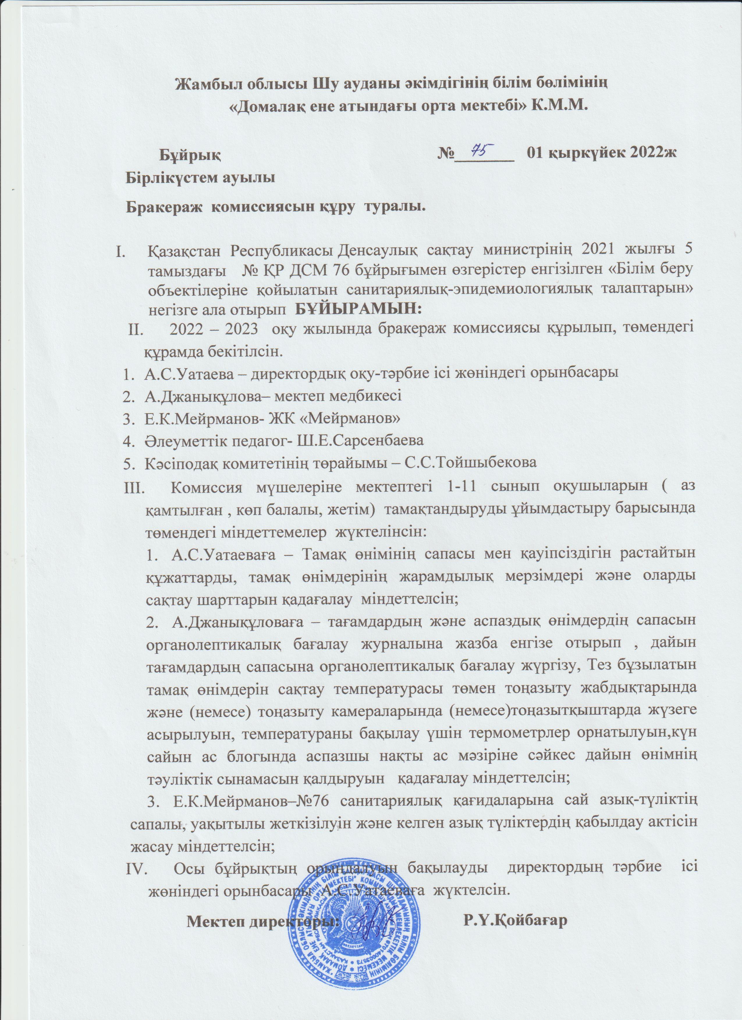 Брокераж комиссиясын құру туралы » Домалак-Ене атындағы орта мектеп