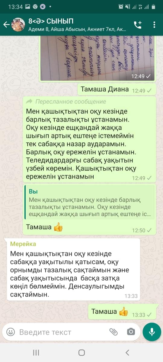 Коронавирустық инфекцияның таралуына жол бермеуге байланысты карантиндік шаралар жағдайында жаңа 2020-2021 оқу жылындағы оқу ерекшеліктері туралы оқушыларды хабардар ету мақсатында оқушыларға түсіндірме жұмыстары жүргізіліп, жадынамалар таратылып, бейнероликтер көрсетілді. Сынып сағатында "Үйде қалай оқуға болады?", "Кибермәдениет", "Гигиена негіздер" тақырыптары қамтылды.