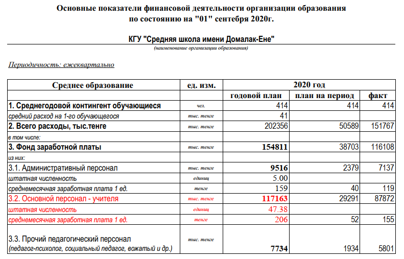 08 сентябрь 2020 0 1 2 3 4 5 Основные показатели финансовой деятельности организации образованияпо состоянию на "01" сентебря 2020г.