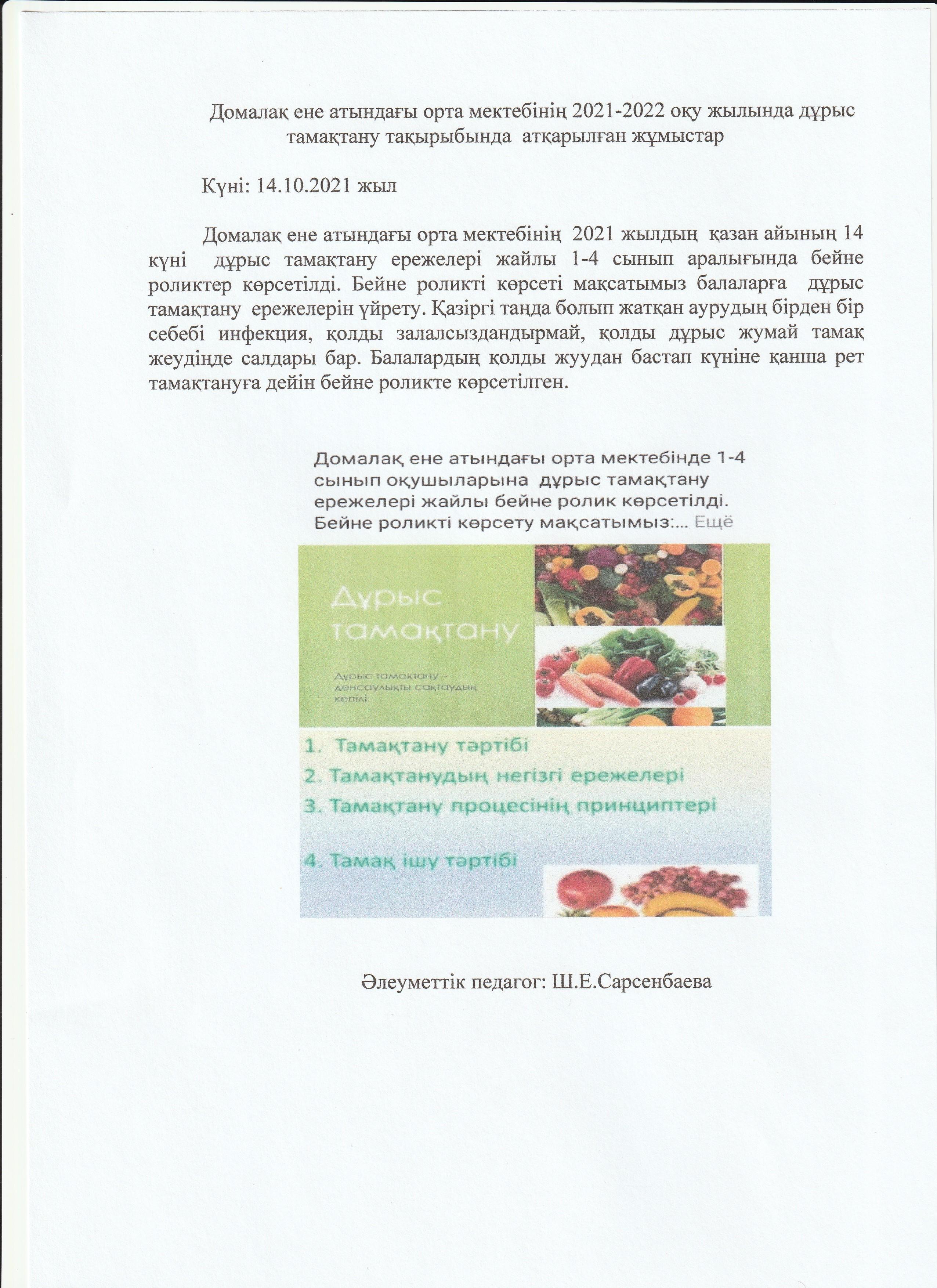 Дұрыс тамақтану » Домалак-Ене атындағы орта мектеп